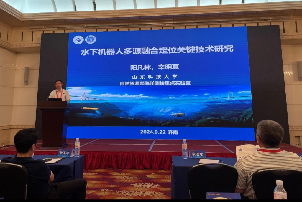陽凡林在“空天時空信息與導航”分論壇作了題為“水下機器人多源融合定位關鍵技術研究”的學術報告。報告介紹了水下機器人精密定位領域的研究現狀、基本理論,并分享了在水聲多信標約束定位、特征匹配位姿改正以及魯棒自適應濾波等方面的研究成果,并與會場同行進行了深入交流。