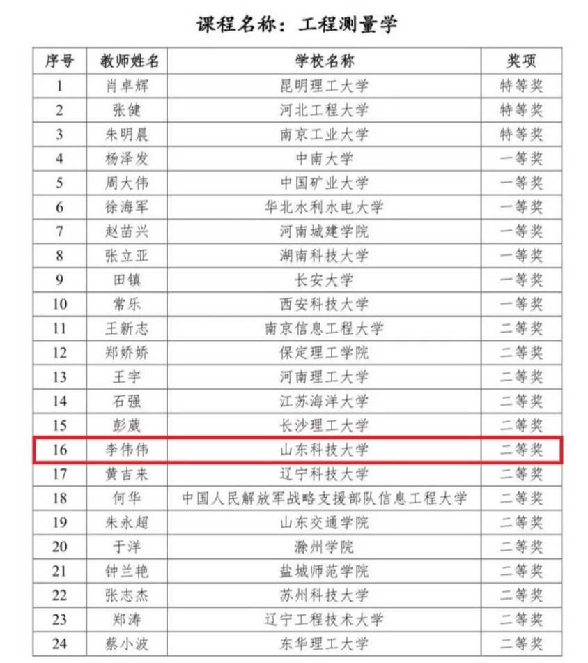 近日,2023年全國高等學(xué)校測繪學(xué)科教學(xué)創(chuàng)新與育才能力大賽——青年教師講課競賽決賽在湖南科技大學(xué)落下帷幕。我院地理信息系孔冬賢老師獲“遙感原理與應(yīng)用”組一等獎,測繪工程系崔健慧老師獲“GNSS原理及應(yīng)用”組一等獎,海洋測繪系李偉偉老師獲“工程測量學(xué)”組二等獎。