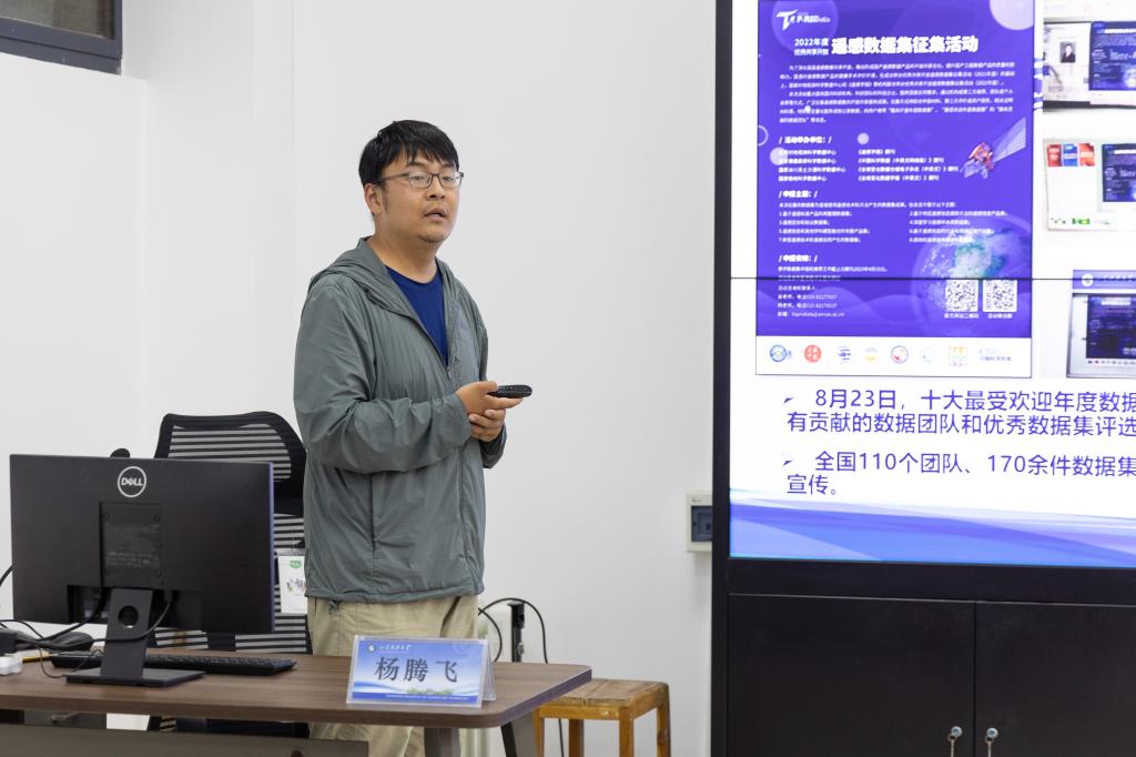 報告會上,楊騰飛博士從國家對地觀測科學數據中心成立的背景、發展戰略以及應用服務等內容展開,分析了新時代應對數據問題與挑戰的思路和建立新型數據生態的方法。他對如何獲取國家對地觀測科學數據中心的重要開放資源進行了普及,并現場回答了師生提問。