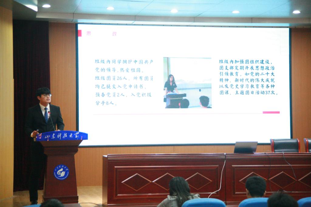 經班級申請、學院審核,共有7個班級進入答辯環節。答辯伊始,主持人介紹了答辯流程及注意事項。隨后,各位班級代表依次上臺進行答辯,他們從班級建設、學風建設、黨團建設、科技創新、文化活動、社會實踐、志愿服務等方面展示了本班級上一學年取得的成績。答辯結束后,各位評委老師根據各班級的匯報情況,綜合班級日常表現等,初步評選出2022-2023學年先進班集體。