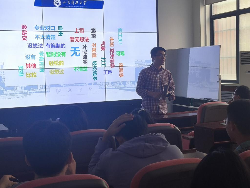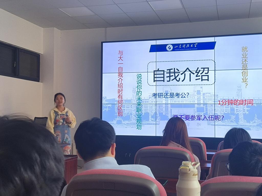 隨后,全班同學結合大學期間的發展變化、未來發展規劃等方面逐一進行了自我介紹,分享了大學期間的收獲和成長,以及個人存在的不足,并對大三大四的大學生生活進行規劃,樹立了短期職業生涯規劃目標。班長司秉奇準備了職業規劃的相關材料,向大家介紹了有關考研、就業、考公考編、入伍和其他職業相關的信息和知識,為大家整理了一些職業發展規劃的資料和網站,方便同學們做好職業生涯規劃。