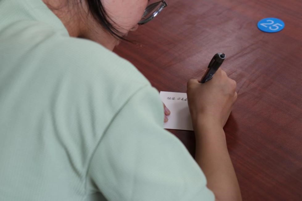 參與者通過創作三行詩的形式,表達對祖國的深情厚誼和無限熱愛。“有句話不得不說/我愛你/中國”“祖國,你是我永恒的驕傲/在你歷史長河中我見證輝煌/愿以我赤子之心,伴你走向未來”“旗正揚/路正長/跟著黨走創輝煌”“始于信仰初綻放/現于盛世美華章/忠于祖國永不忘”……