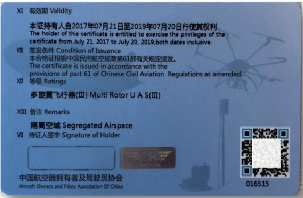 我校學(xué)員經(jīng)理論和實(shí)踐考試合格后,可以獲得三個(gè)證書,分別是由中國民用航空局頒發(fā)的民航局“無人機(jī)駕駛員云執(zhí)照”,由中國航空器擁有者及駕駛員協(xié)會(AOPA)頒發(fā)的“AOPA無人機(jī)駕駛員合格證”,和由山東科技大學(xué)頒發(fā)的山東科技大學(xué)無人機(jī)測繪結(jié)業(yè)證書。其中民航無人機(jī)駕駛員執(zhí)照和AOPA無人機(jī)駕駛員合格證等級高,含金量大,“一考雙證”是我們睿飛無人機(jī)培訓(xùn)學(xué)校的巨大優(yōu)勢。